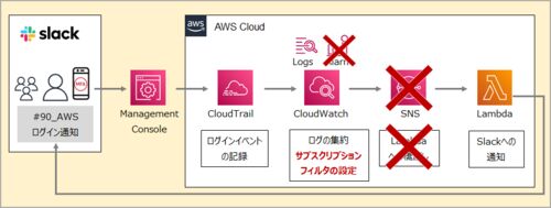はじめに こんにちは! BFT名古屋支店・インフラ女子(?)のやまぐちです。 前回の投稿でAWSマネジメントコンソールにログインしたらSlackへ通知する仕組みの実装をしましたが、Slackに通知される内容はアラーム内容なので、「ログインした」ということ…